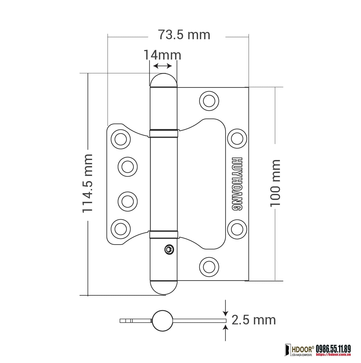 Thông số kỹ thuật bản lề âm dương Huy Hoàng chính hãng