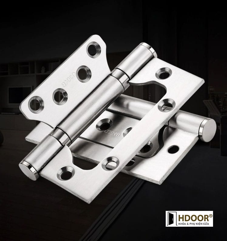 - Bản lề cánh bướm hay còn gọi là bản lề âm dương cơ chế trục xoay ứng dụng lắp cho cửa có độ dày 40-50mm.