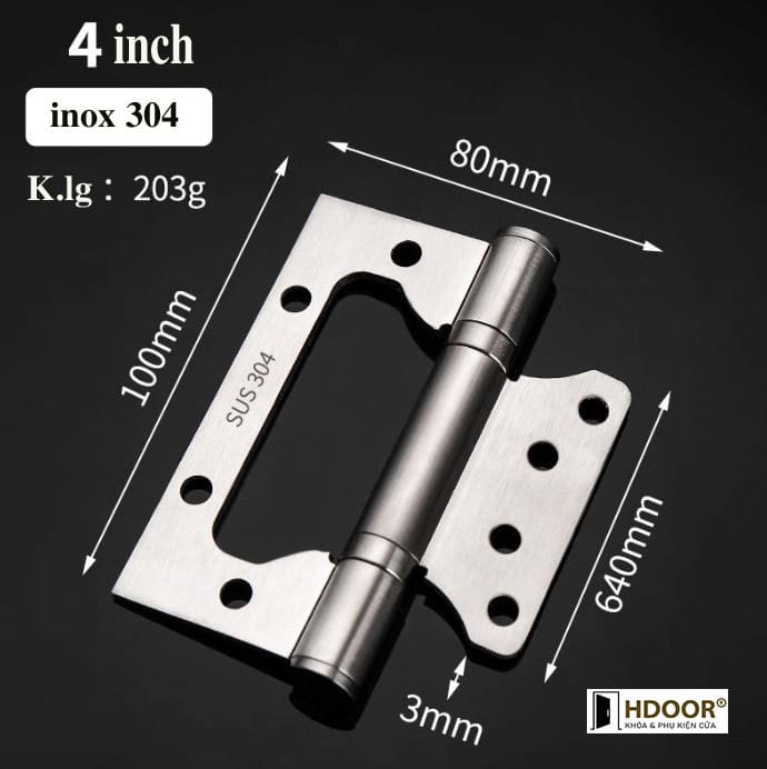 Cấu tạo và thông số kỹ thuật Bản lề âm dương INOX304 4x3x3