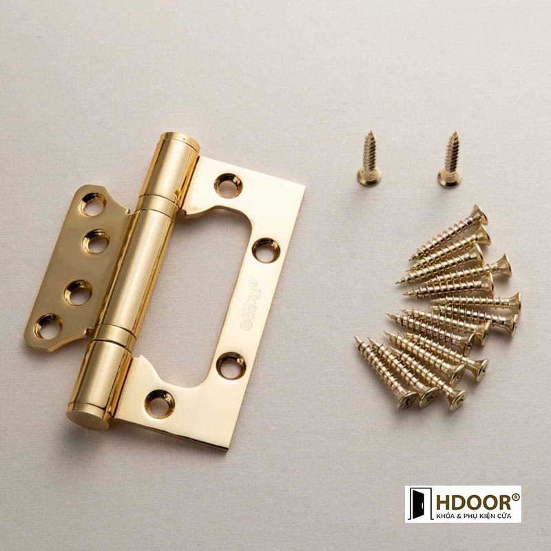 Bản lề âm dương mạ vàng bóng 4x3x3 dành cho cửa gỗ, cửa nhựa với chất liệu inox304 mạ vàng PVD độ dày lá 3mm.