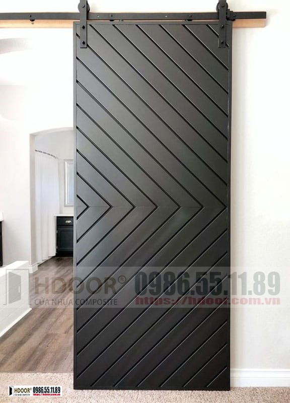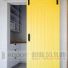- Là mẫu cửa nhựa composite tạo kiểu chỉ sơn, cửa lùa ray treo trên.