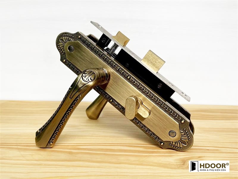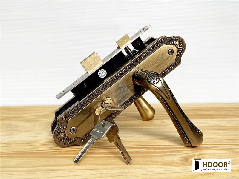 Tay ốp khóa được sản xuất bằng hợp kim ZDC-2, mạ đồng giả cổ.