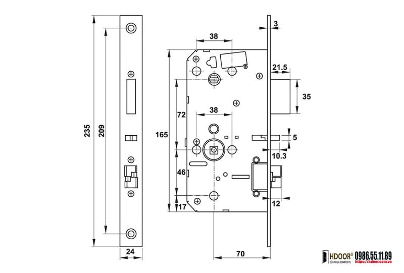 - Loại cửa gỗ, khoảng cách cửa và khung cửa tối thiểu 3mm